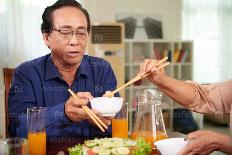 Старший человек за обеденным столом