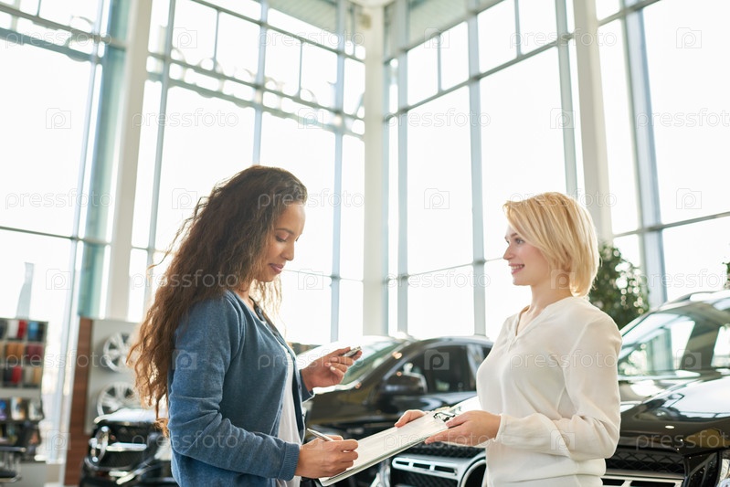 Клиент смешанной гонки в автомобильном салоне