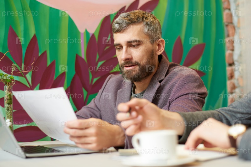 Зрелый бизнесмен, работающий в кафе