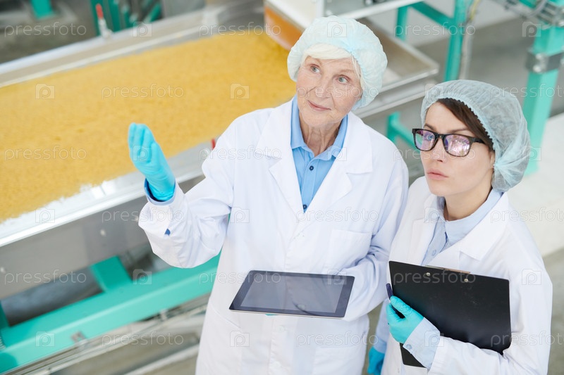 Две женщины, управляющие производством на фабрике