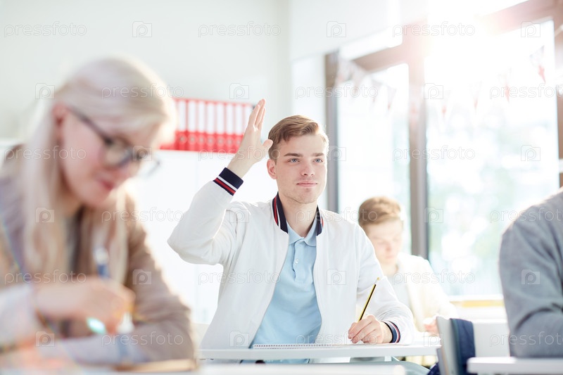 Парень, поднимающий руку