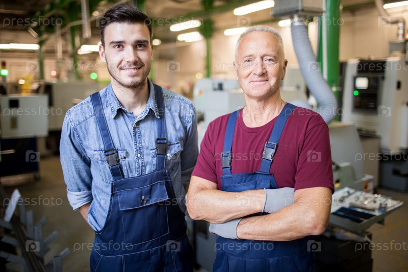 Два механика стоят на фабрике