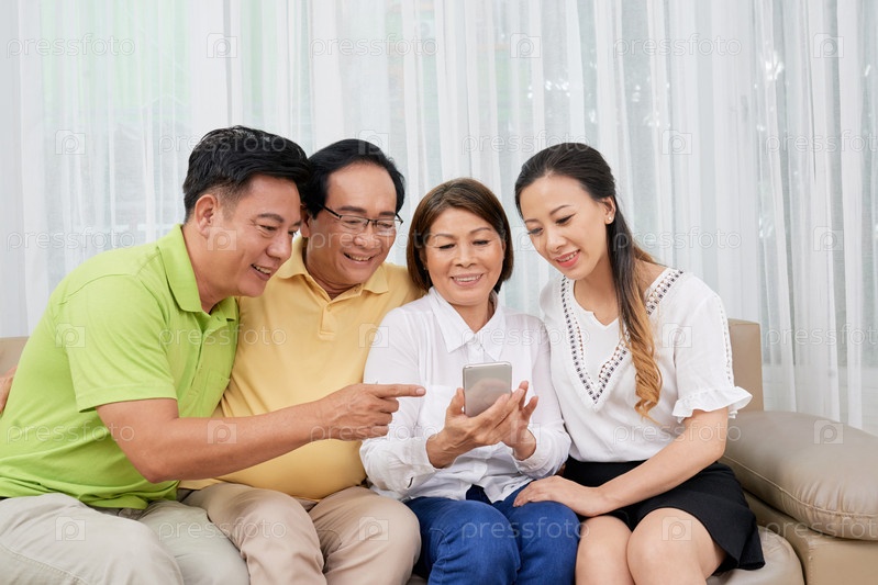 Большая семья со смартфоном