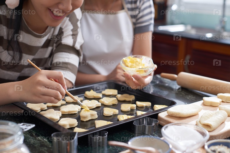 Женщины, рассыпающие масло на печенье