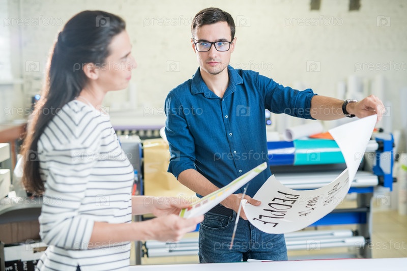 Коллеги по типографии обсуждают плакат