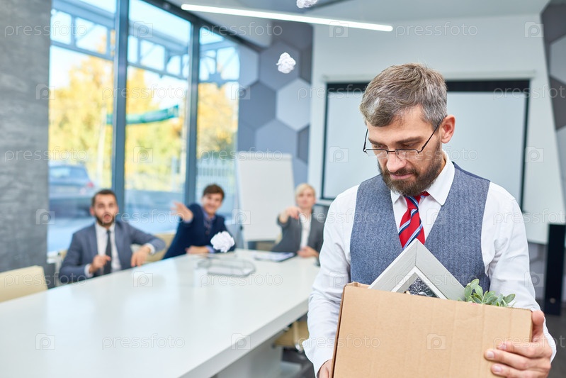 Печальный бородатый бизнесмен уволен с работы