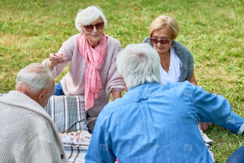 Пожилые люди наслаждаются пикником в парке