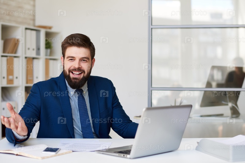 Счастливый бизнесмен в офисе