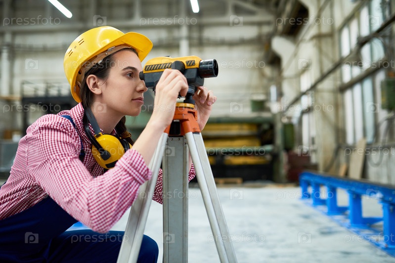 Женщина-геодезист работает на месте