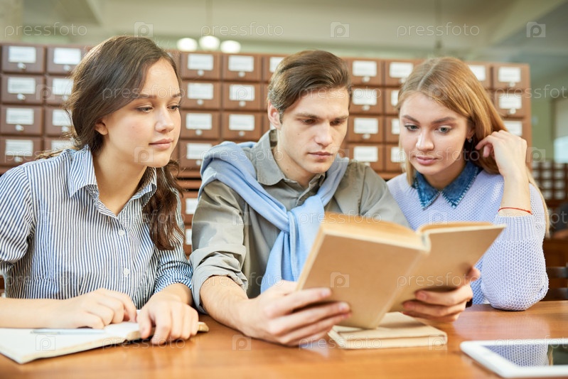 Студенты читают учебник в библиотеке колледжа