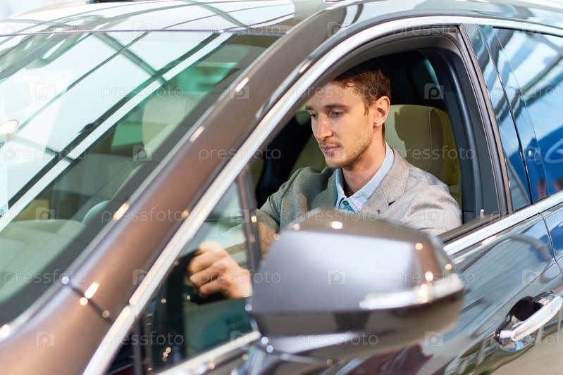 Красивый мужчина внутри новой машины