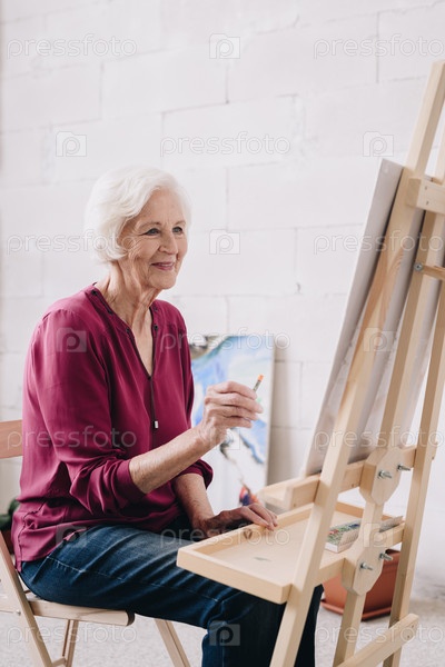 Улыбающаяся старшая женщина рисует в Изеле