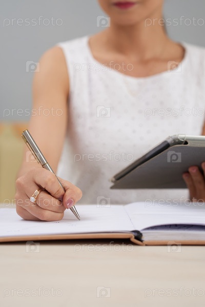 Деловая женщина, записывающая планы
