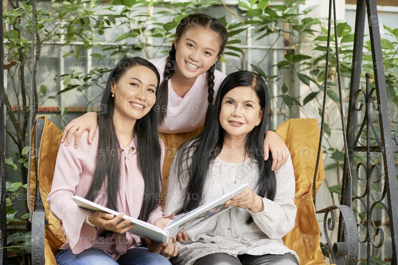 Красивые женщины из нескольких поколений на качелях