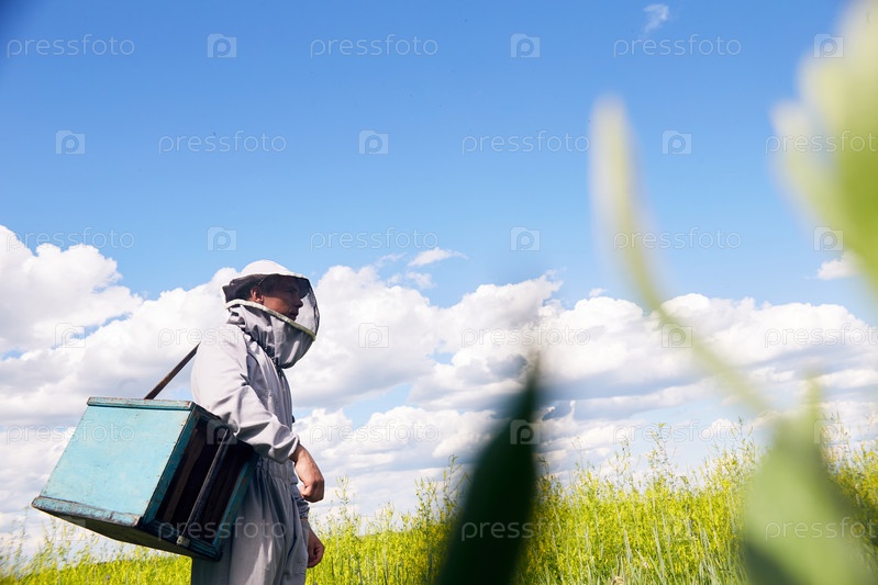 Апиарщик в современном лугу