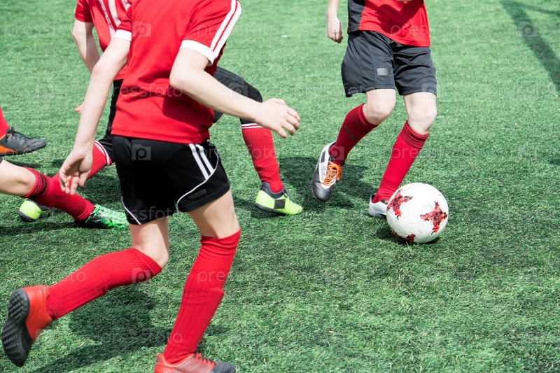 Непризнанные мальчики играют в футбол на тренировке