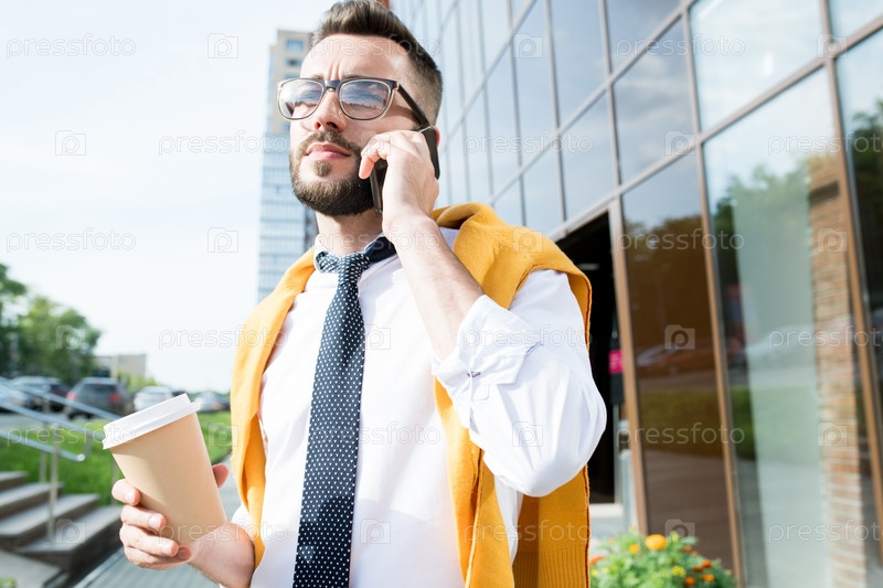 Красивый бизнесмен разговаривает по телефону на улице
