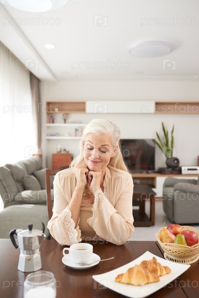 Пожилая женщина наслаждается завтраком