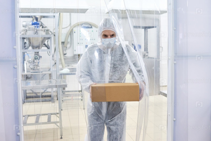 Фармацевтический лабораторный работник носит коробку