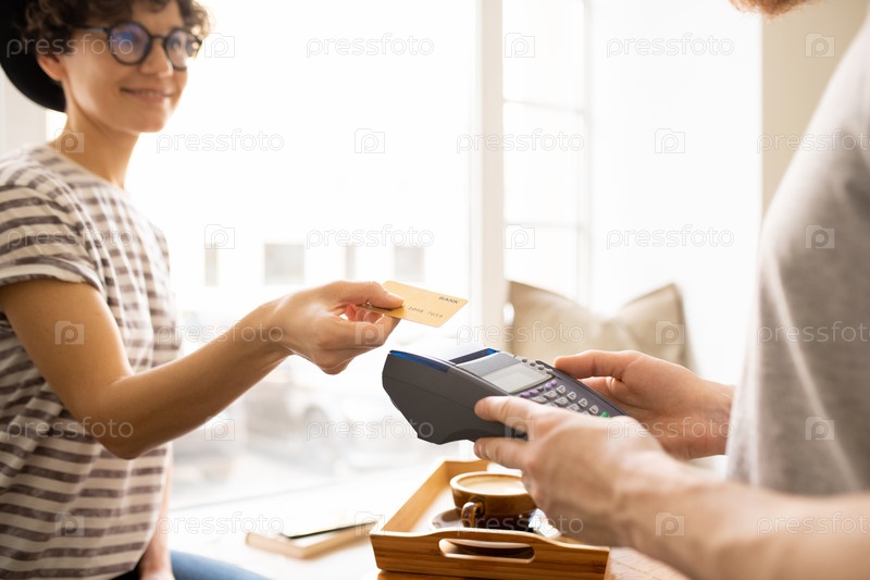 Дама дает кредитную карту кассиру