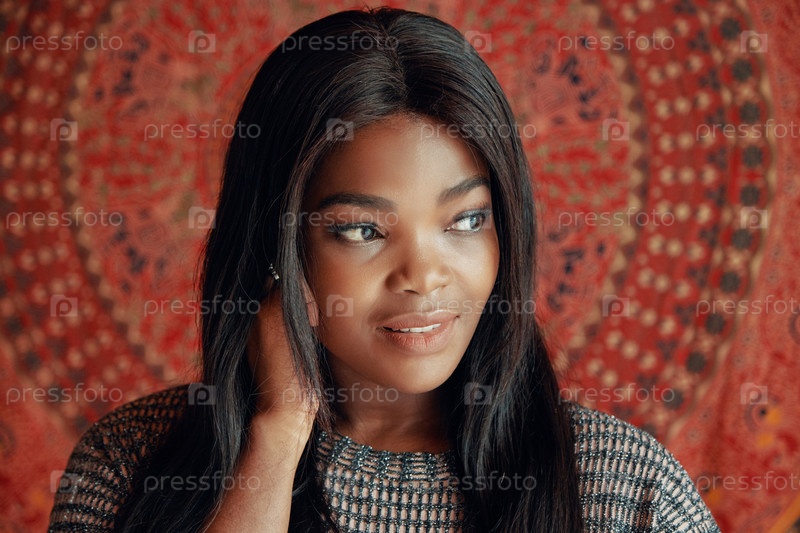 Красивая чернокожая бизнесвуменка смотрит в сторону