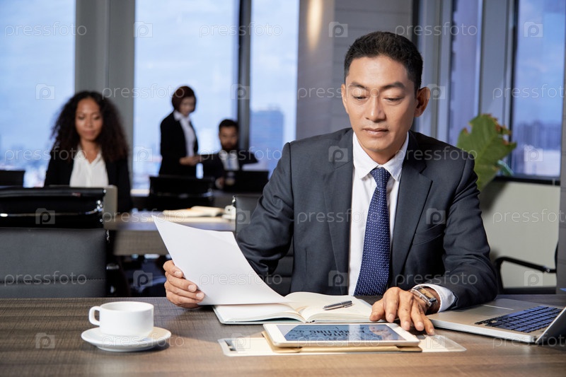 Этнический бизнесмен, работающий с бумагами