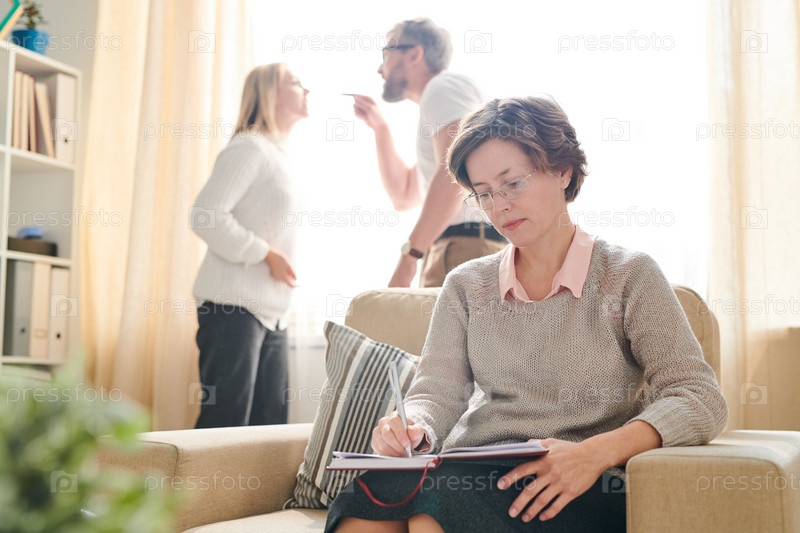 Психолог делает заметки, пока пара ссорится
