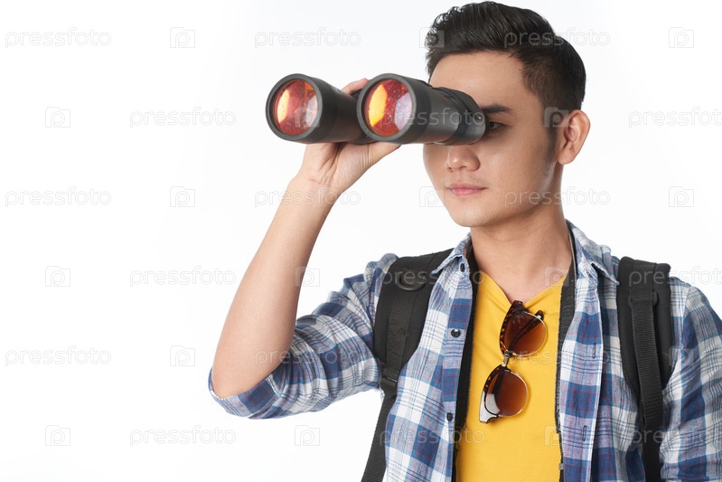 Красивый турист с биноклем