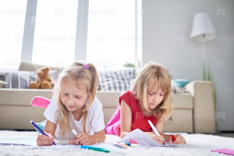 Красивые девочки рисуют на полу