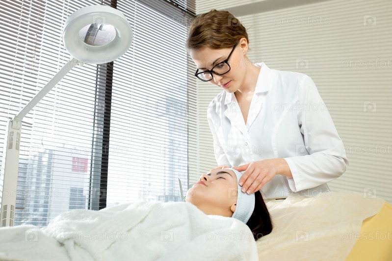 Молодая косметолог сосредоточена на работе
