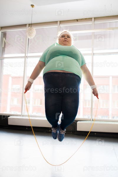Толстая женщина прыгает
