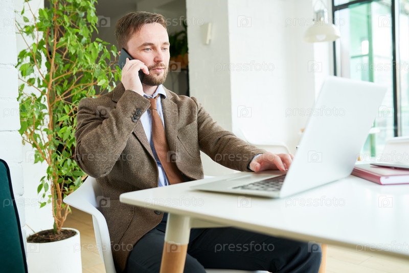 Успешный бизнесмен, работающий в кафе