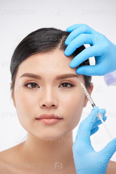 Руки делают инъекции на брови