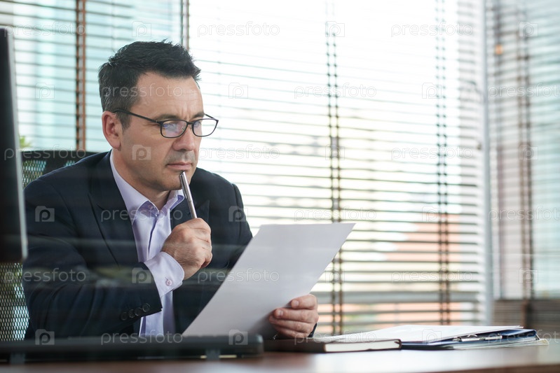 Предприниматель читает документ