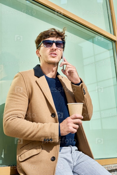 Красивый молодой человек разговаривает по телефону на улице