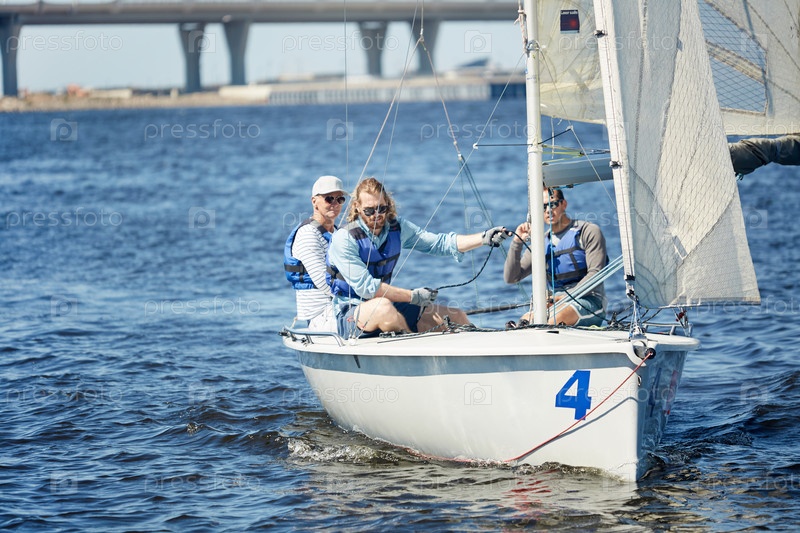 Современные мужчины на парусной лодке