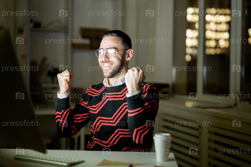 Взволнованный геймер выигрывает деньги через онлайн-казино