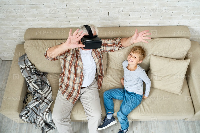 Взволнованный старший мужчина использует VR
