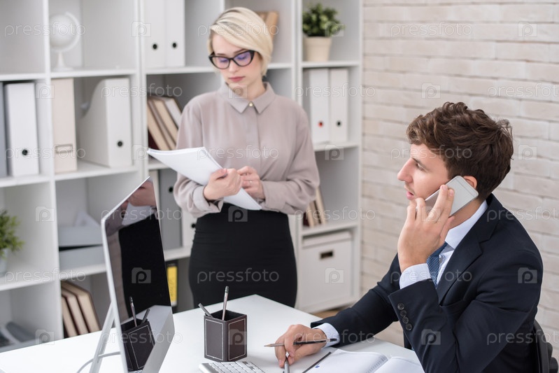 Успешный бизнес-исполнитель занят работой в офисе