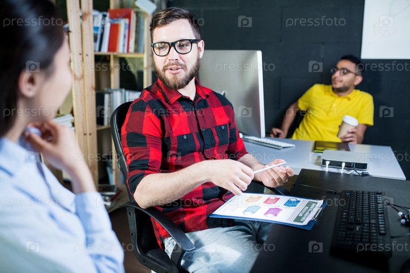 Творческие молодые люди обсуждают стратегию в офисе