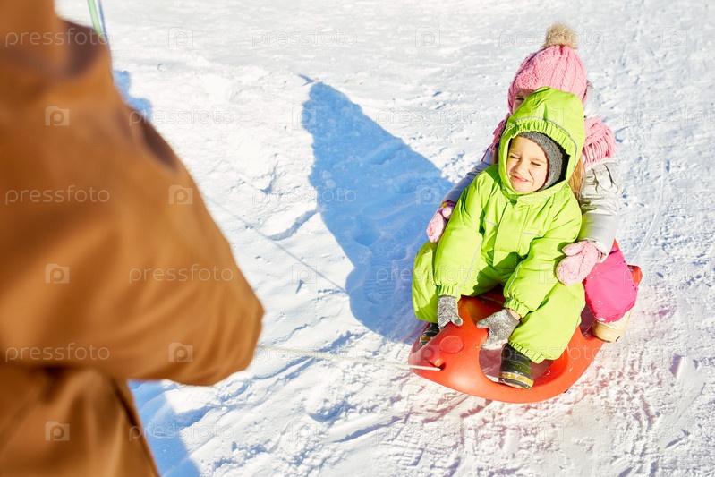 Маленькие дети на санях
