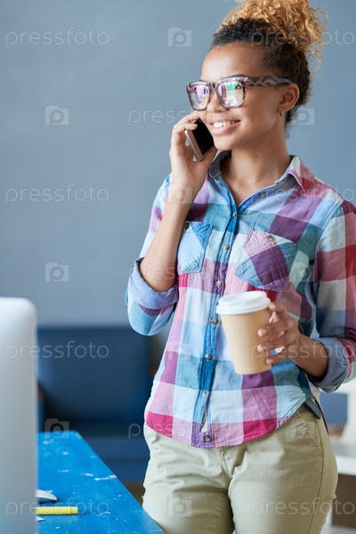 Афроамериканская женщина, говорящая по телефону