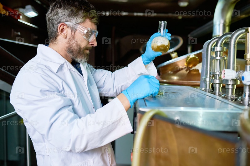 Современный технический специалист по производству пива создает крафт-пиво на заводе