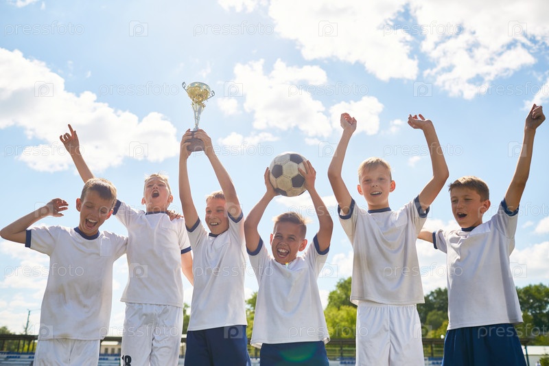 Футбольная команда выигрывает Кубок чемпионов для мальчиков