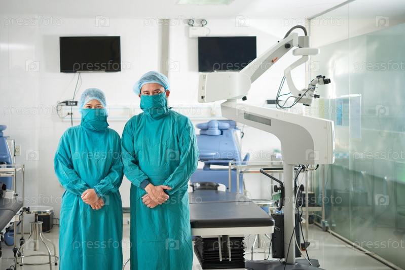 Хирурги в зеленой форме Профессиональные