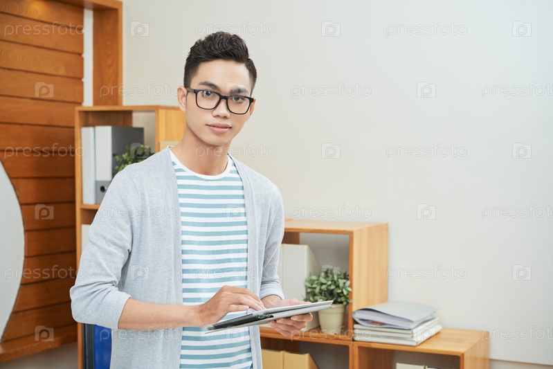 Случайный офисный работник с планшетом