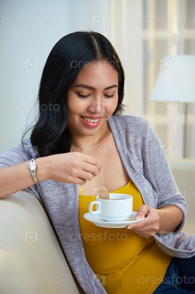 Филиппинская женщина погружает чайный пакет в чашку