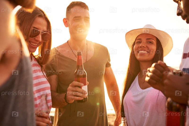 Счастливые друзья, беседующие на вечеринке под открытым небом