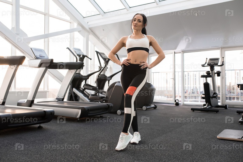 Молодая женщина позирует в тренажерном зале