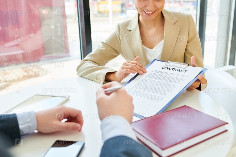 Деловые люди, подписывающие контракт Close Up